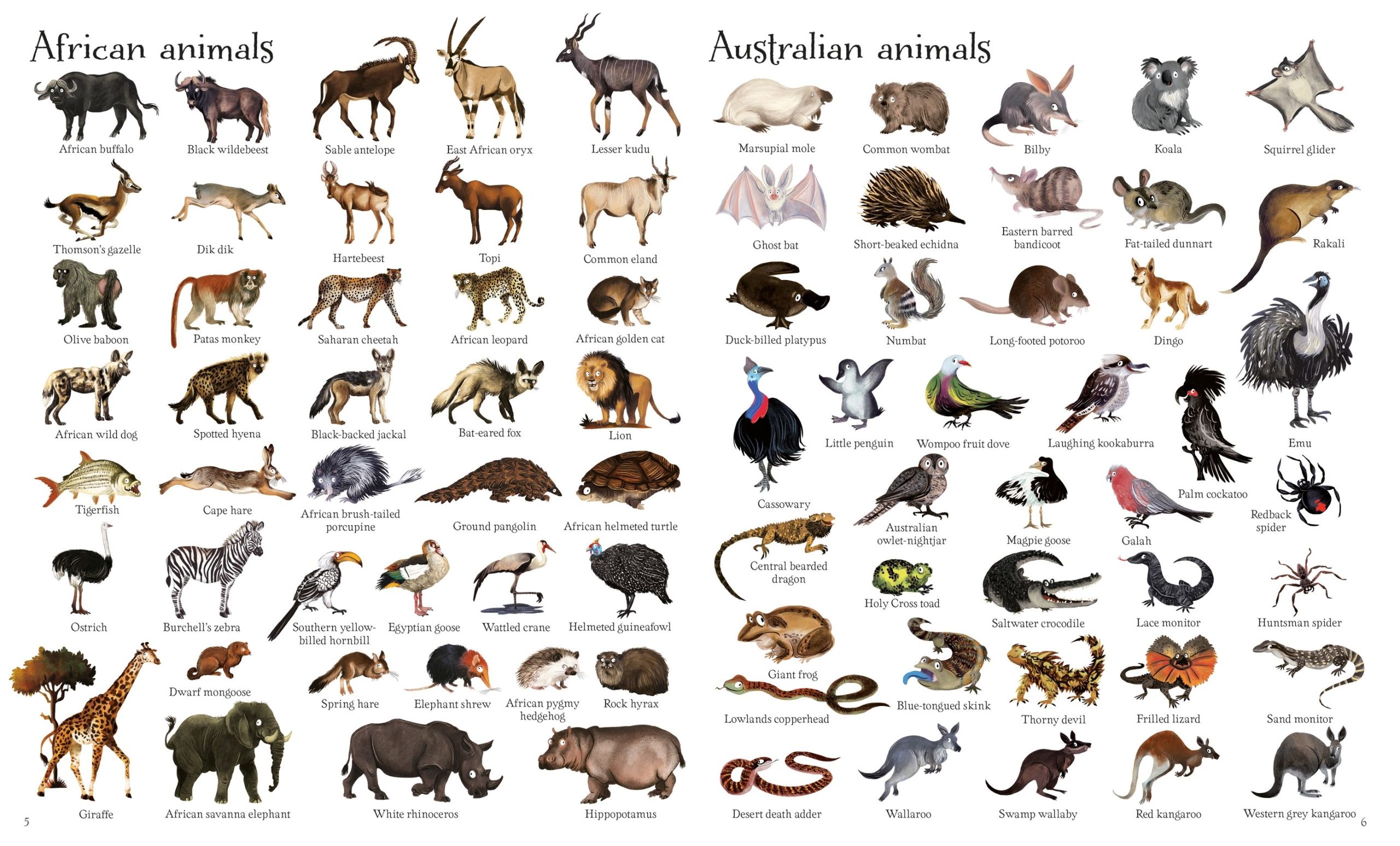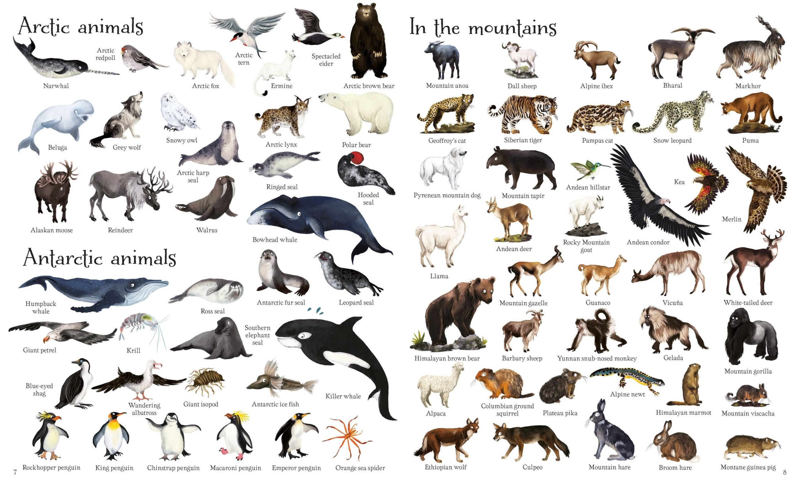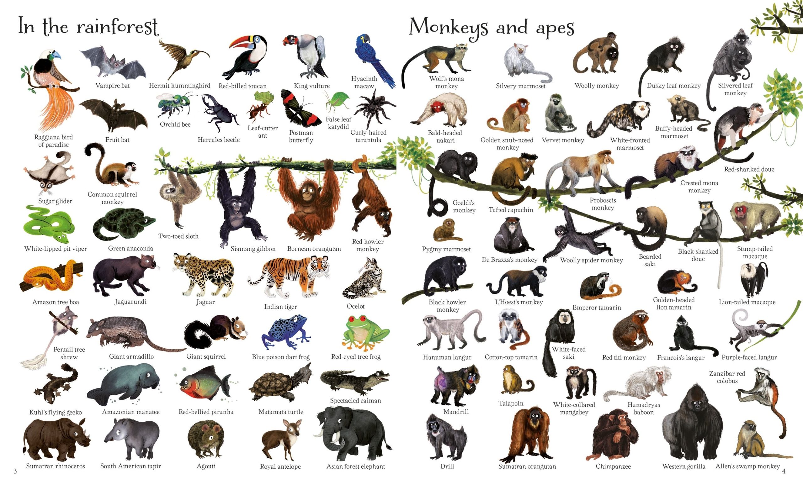 A beautifully illustrated reference book filled with 1000 amazing animals, from lizards and llamas to gorillas, great white sharks and much more. Every picture is labelled with its name, and there’s an index of all the names at the back of the book. A wonderful way to discover the wildlife and ecology of different habitats. Age 3+