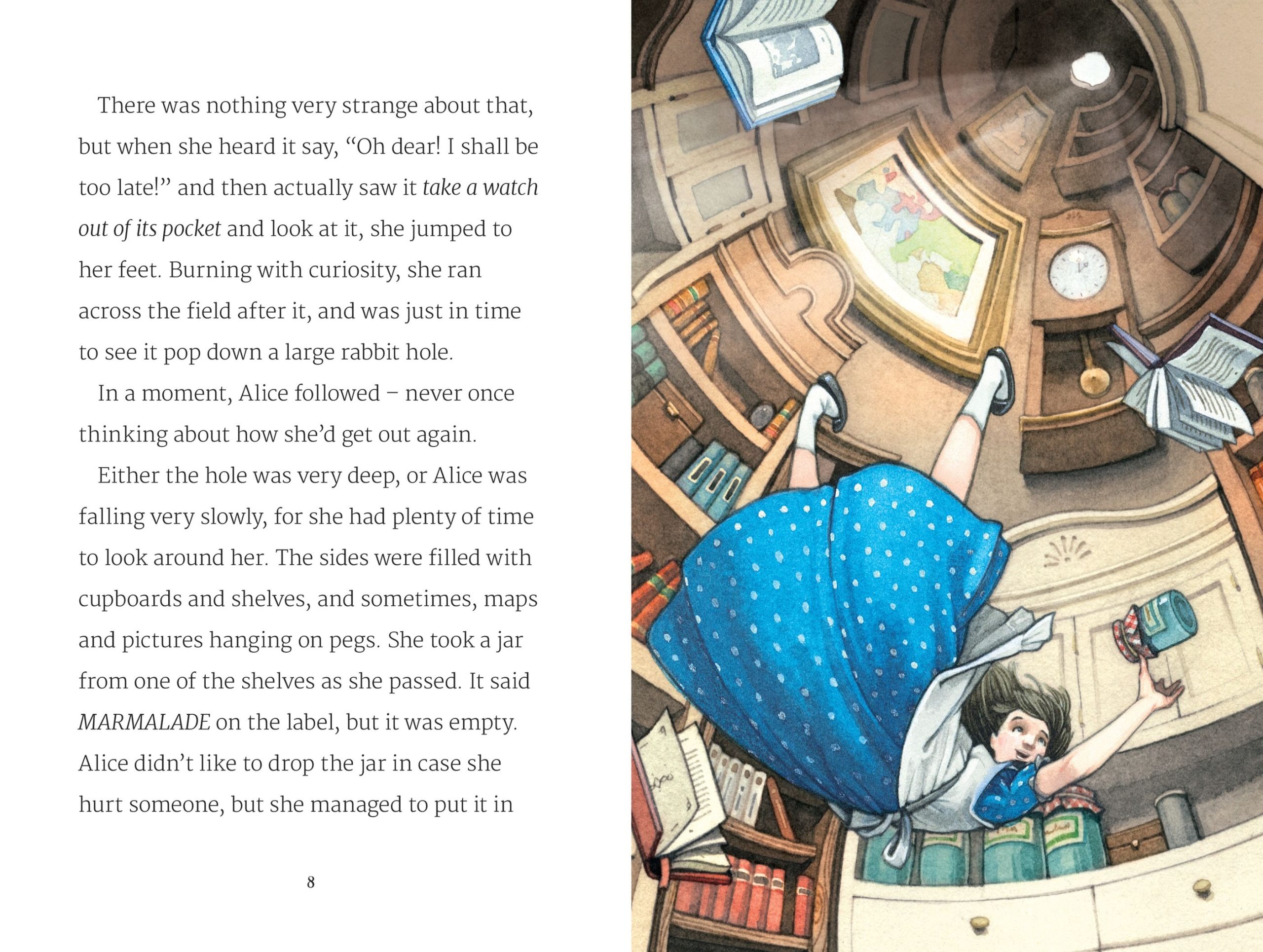 Urmează-i pe Alice și Iepurele Alb în gaura iepurelui și ia parte la aventurile lor nebunești. Parte a seriei Usborne Young Reading, această repovestire a poveștii populare a lui Lewis Carroll este ideală pentru cititori independenți. Varsta recomandata 5 ani+