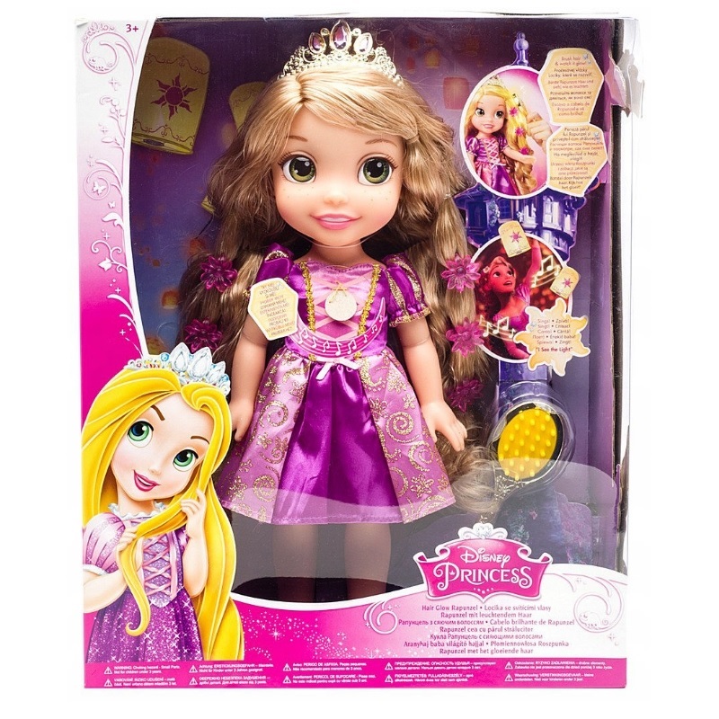 Papusa Rapunzel cu par magic Acum poti aduce magia in viata reala cu adorabila papusa Hair glow Rapunzel. Atunci cand o vei pieptana, parul ei va straluci si o va face speciala, si in acelasi timp va canta superba melodie I see the light. Melodia poate fi setata in limba dorita (9 limbi, inclusiv engleza si romana). Cu siguranta este cadoul perfect pentru fetita dumneavoastra! O va cuceri! Varsta 3+