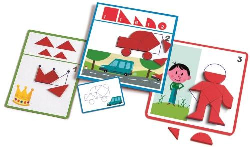Eduludo forme geometrice Un joc din colecția Eduludo care oferă o introducere simplă și distractivă în geometrie și explorarea formelor prin joc. Jocul cu formele tangramului oferă copiilor o introducere în geometrie. Trei niveluri de dificultate, pentru ca fiecare copil să poată progresa în ritmul său. Sunt incluse soluții, astfel încât copiii să își poată corecta propriile puzzle-uri. Fiecare kit Eduludo, extrem de educativ, se concentrează pe un proces de învățare specific pentru a ajuta copiii să își dezvolte abilitățile cognitive. Conținut: 24 de provocări cu 3 nivele de dificultate diferite (12 cartonașe cu două fețe), 36 de piese din lemn de diferite forme și dimensiuni, săculeț din textil pentru depozitarea pieselor, 12 cărți cu răspuns față-verso. Vârsta recomandată: 3 – 6 ani. Confecționat din lemn, hârtie și carton certificate FSC®. AVERTISMENT: Contraindicat copiilor sub 3 ani. Conține părti mici ce pot fi înghițite, pericol de sufocare. A se utiliza sub directa supraveghere a unei persoane adulte. Producător: Djeco, Franţa.