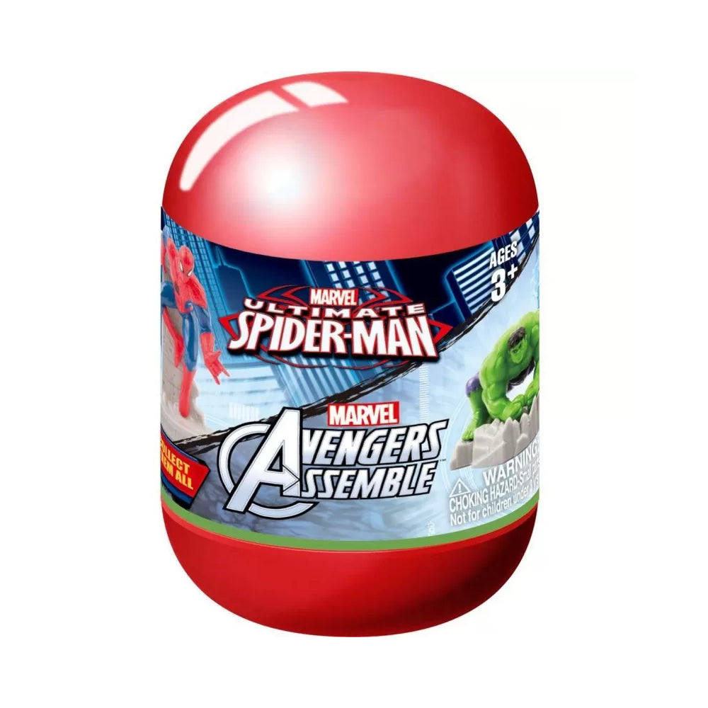 Deschide capsula secreta si descopera un erou Marvel Avengers in interior! Sunt 6 supereroi de colectionat din universul Marvel. Pune mana pe Hulk, Omul Paianjen, Iron Man si altii! Colectioneaza toti super-eroii! Fiecare figurina este detaliata si contine un suport pentru a fi expusa in locul preferat. Figurinele sunt ambalate in capsule de plastic – nu se poate alege modelul figurinei, acesta fiind supriza! Figurine disponibile: 6 modele – Spiderman, Ironman, Capitanul America, Hulk si Thor. Varsta recomandata: +3 ani. Dimensiuni capsula: H 7.5 x L 5.5 x l 5.5 cm.