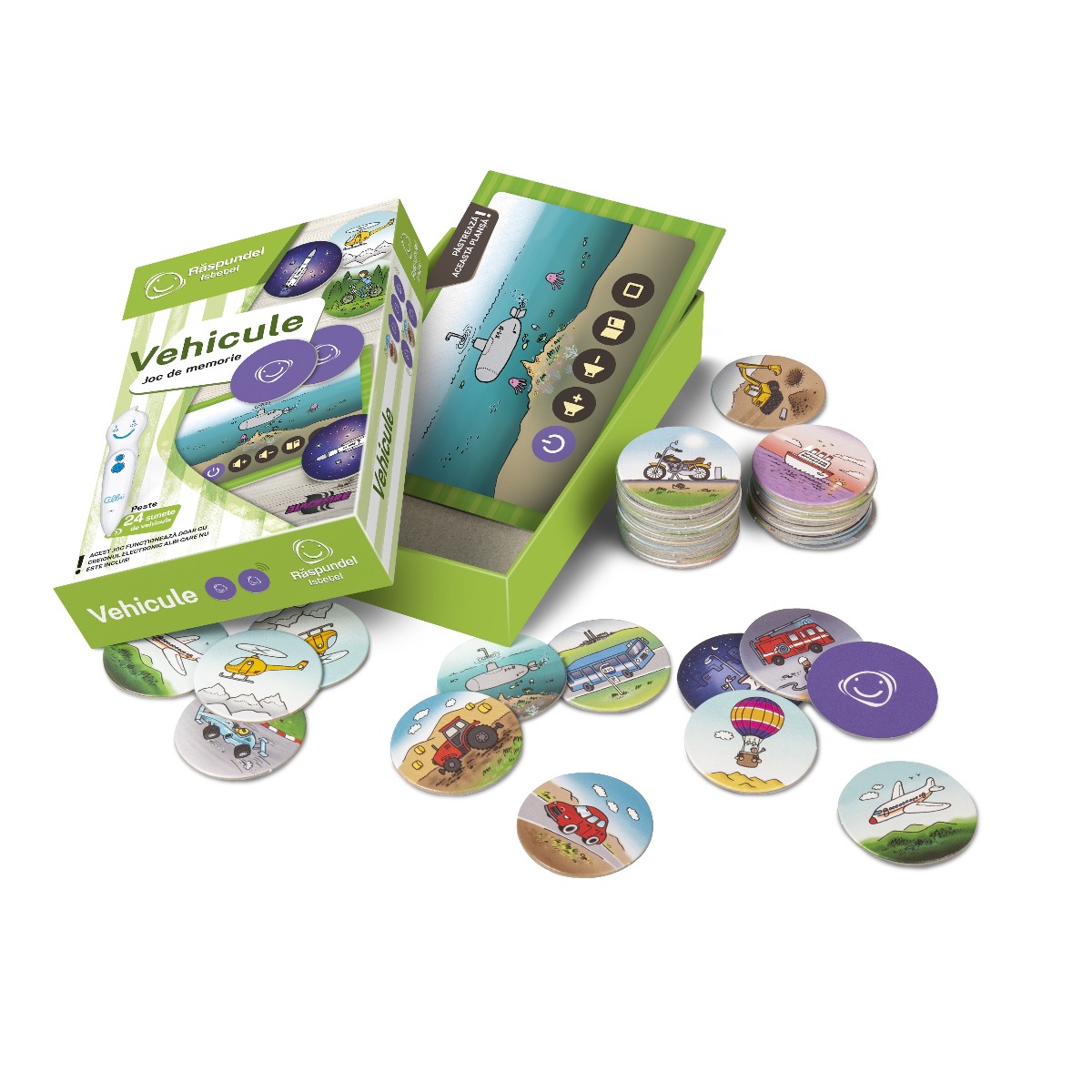 Jocul de memorie este foarte popular si indragit de toata lumea. Cu toate acestea, jucandu-l cu creionul electronic ALBI, ii conferim o cu totul alta dimensiune prin combinarea memoriei vizuale si auditive. De asemenea, acesta ofera mai multe variante de joc. Astfel, copiii vor putea invata sa identifice sunetele care ne inconjoara. Varsta: 3-7 ani Numarul de jucatori: 2 – 4 Jocul contine 48 carti de joc, 2 planse cu reguli, pictograme si instructiuni. Acest joc functioneaza doar impreuna cu creionul Albi, pe care il puteti achizitiona separat sau il gasiti in pachetele cu creion si carte. Un creion functioneaza cu toate produsele Raspundel Istetel. Varsta recomandata: 3+ ani