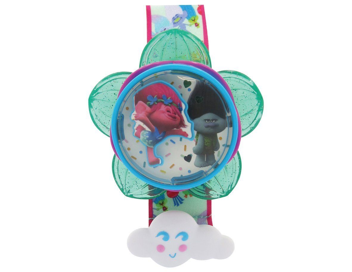 Acum poti readuce la viata aventurile personajelor din filmul Trolls cu aceasta minunata bratara stralucitoare. Bratara are lumini si sunete amuzante care se activeaza la apasarea unui buton si rostirea frazei este timpul pentru o imbratisare! Dimensiuni: 13 x 6 x 23 cm. Varsta 6+